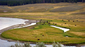 It was the first day of the Labor Day Weekend, and we could see that there were many more cars and tourists on the roads than the past few days. There were traffic jams along the Hayden Vally. We were not sure if it was caused by bisons, but we did see plenty of bisons hanging out in the valley.