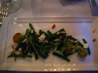Haricot vert salad - grape heirloom tomatoes, goat cheese, slithered almonds, basil, sherry vinaigrette